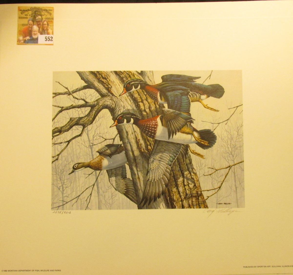 1992 Montana Wood Duck Print, No. 2575 pf 9212 Prints hand autographed by Craig Philllips, measures