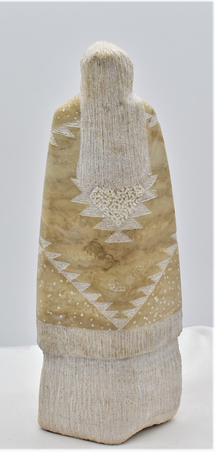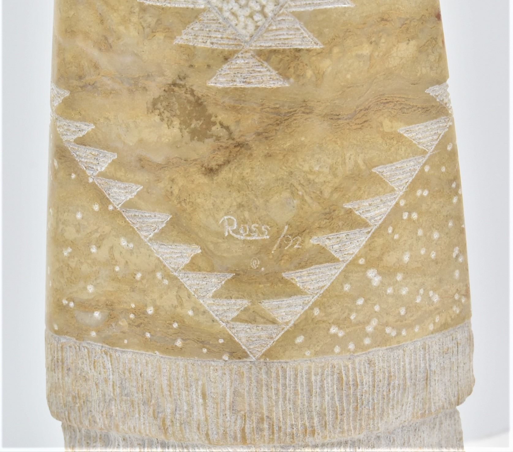 1992 Native American Navajo Carved Alabaster Statue by Rhonda Ross, measures 10'' x 4.5'' x 3.5''