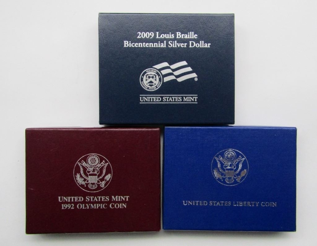 1986 STATUE of LIBERTY HALF DOLLAR UNC, 2009 UNC LOUIS BRAILLE SILVER DOLLAR - ALL ORIGINAL