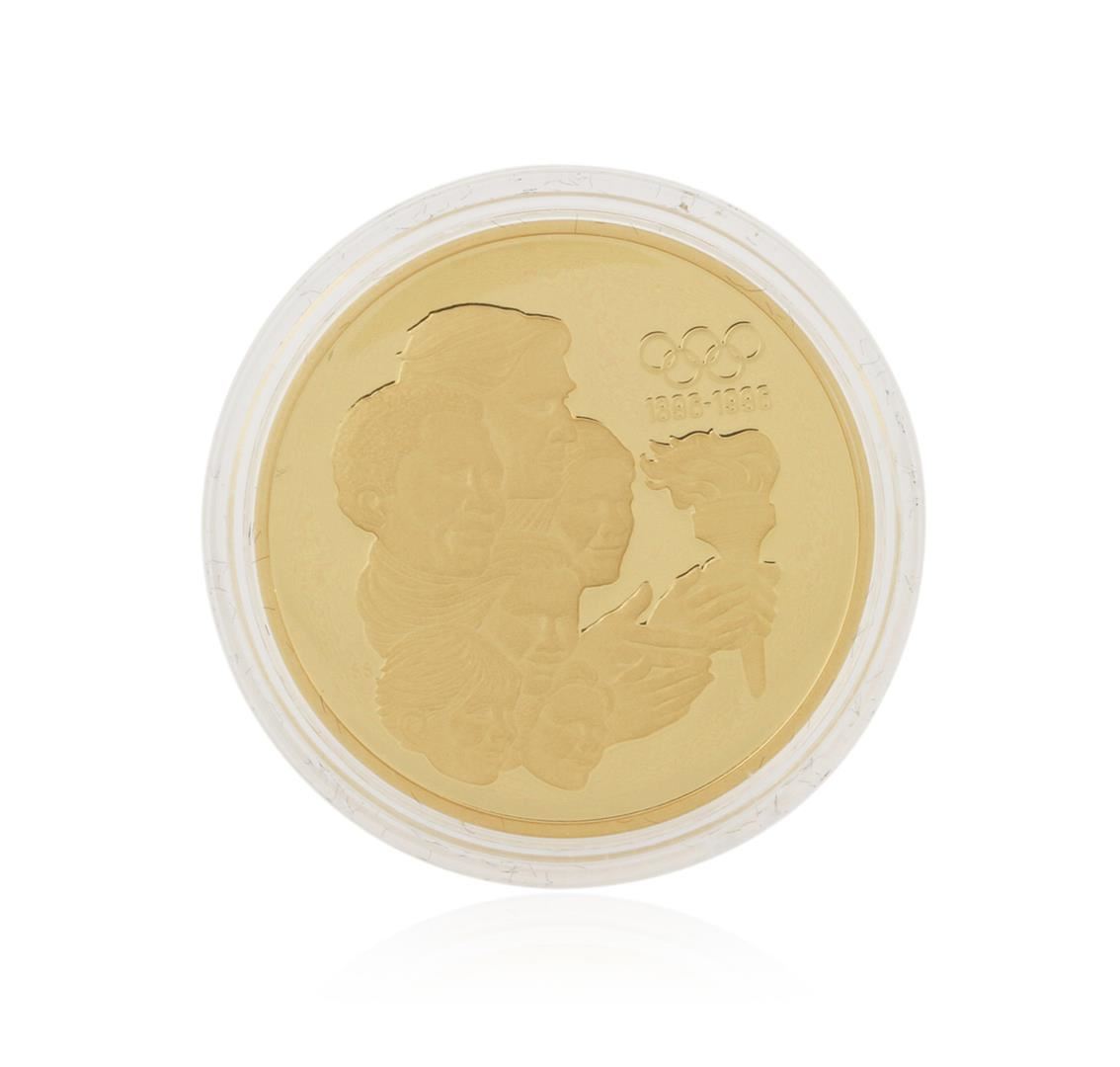 This exquisite gold coin salutes the Olympic Vision and the ability of the Olympic Movement to bring all the world's people together in pursuit of the Olympic ideal. The Olympic Flame is symbolically carried around the world to each Olympiad - a reminder for millions of the noble Olympic ideal.