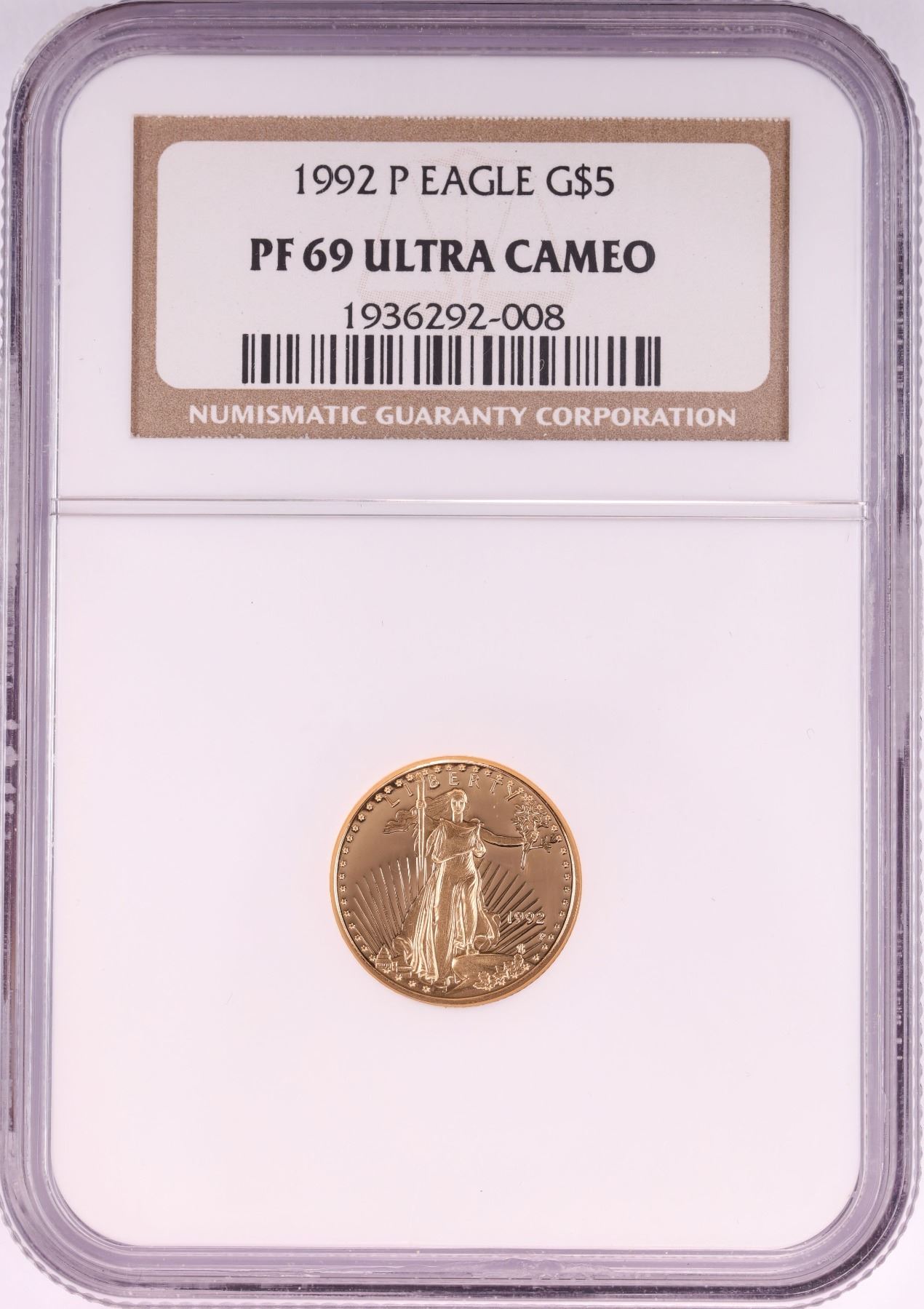 One 1992-P $5 Proof American Gold Eagle Coin NGC PF69 Ultra Cameo.