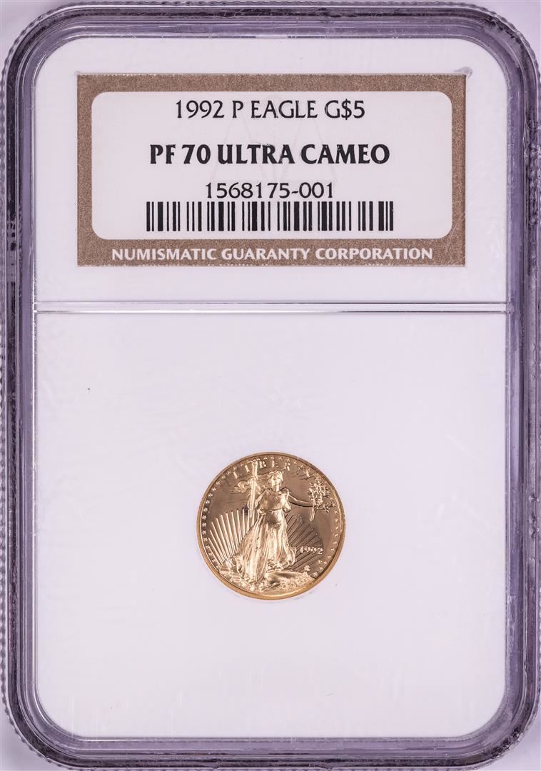 One 1992-P $5 Proof American Gold Eagle Coin NGC PF70 Ultra Cameo. NGC Certified.