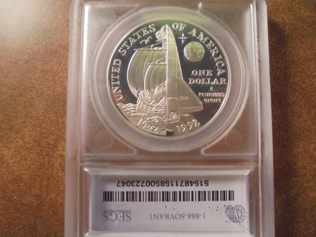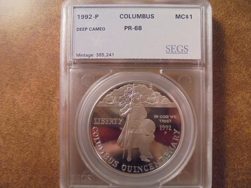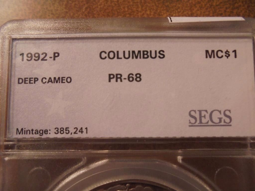 1992-P COLUMBUS SILVER DOLLAR SEGS SLAB