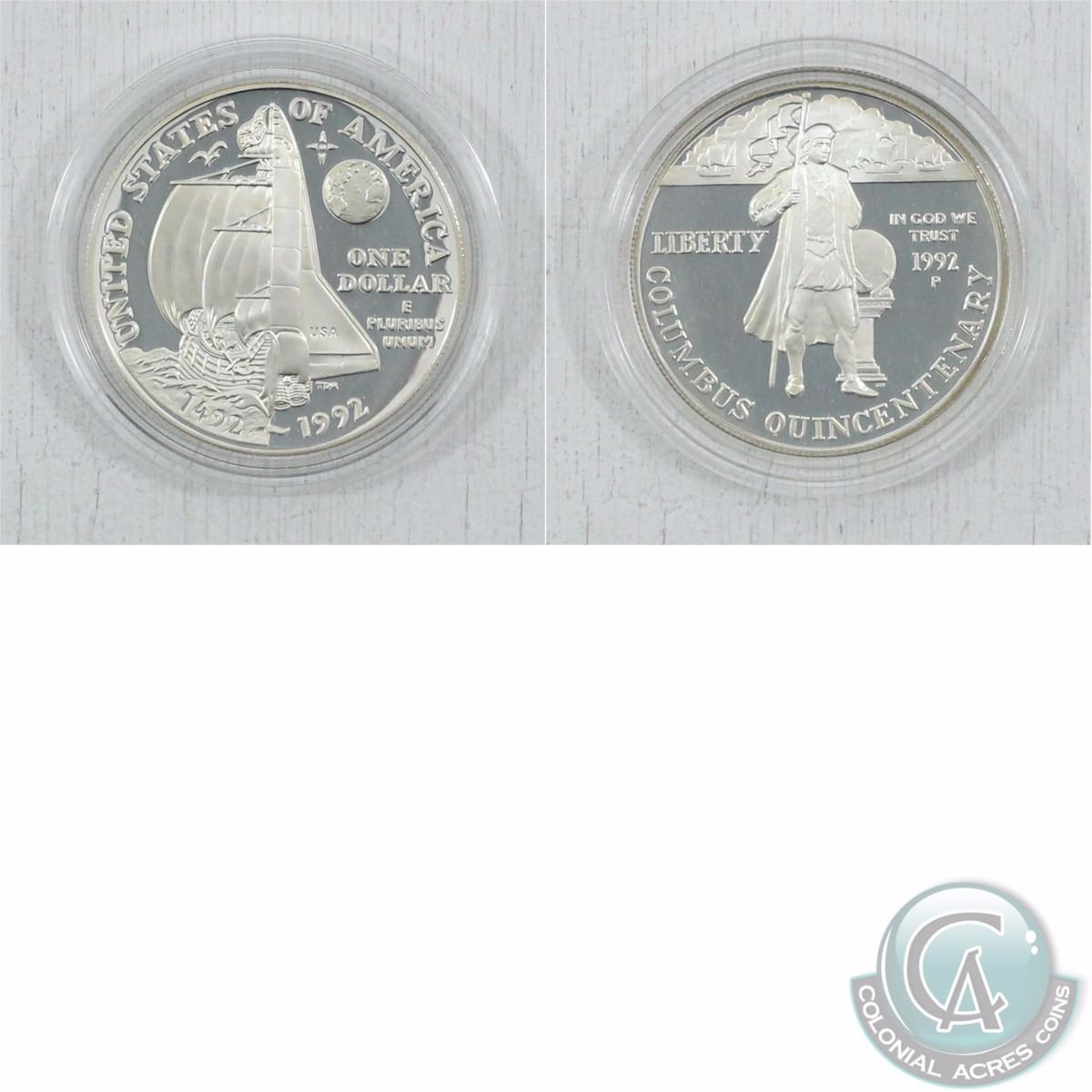 1992-P United States of America Silver Proof One Dollar Commemorating the 500th Anniversary of Columbus Discovery Silver Coin.