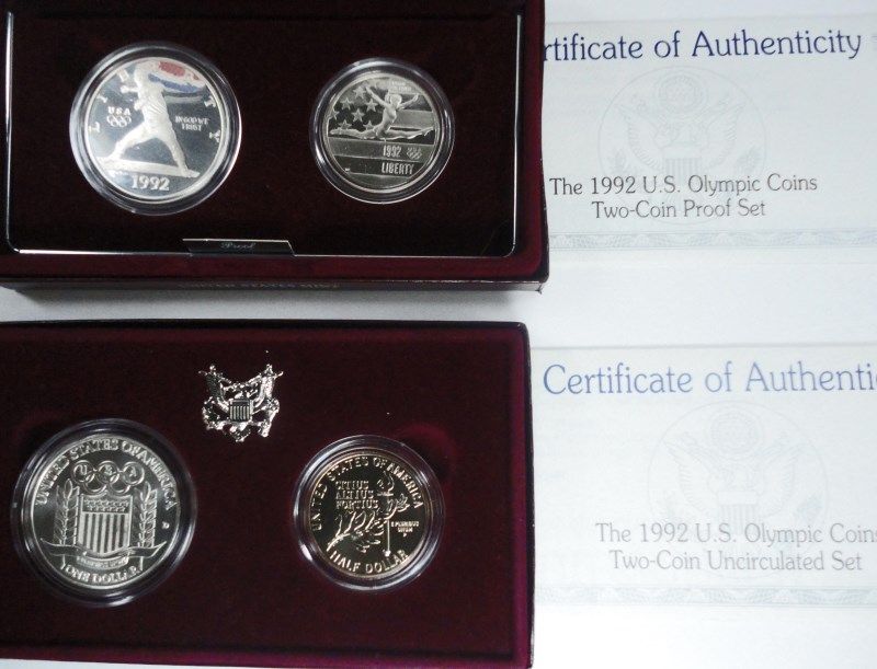 1992 Pf. & UNC. 2 PCS OLYMPIC COMMEM. SILVER DOLLARS/CLAD HALVES, NICE!!!