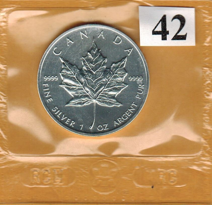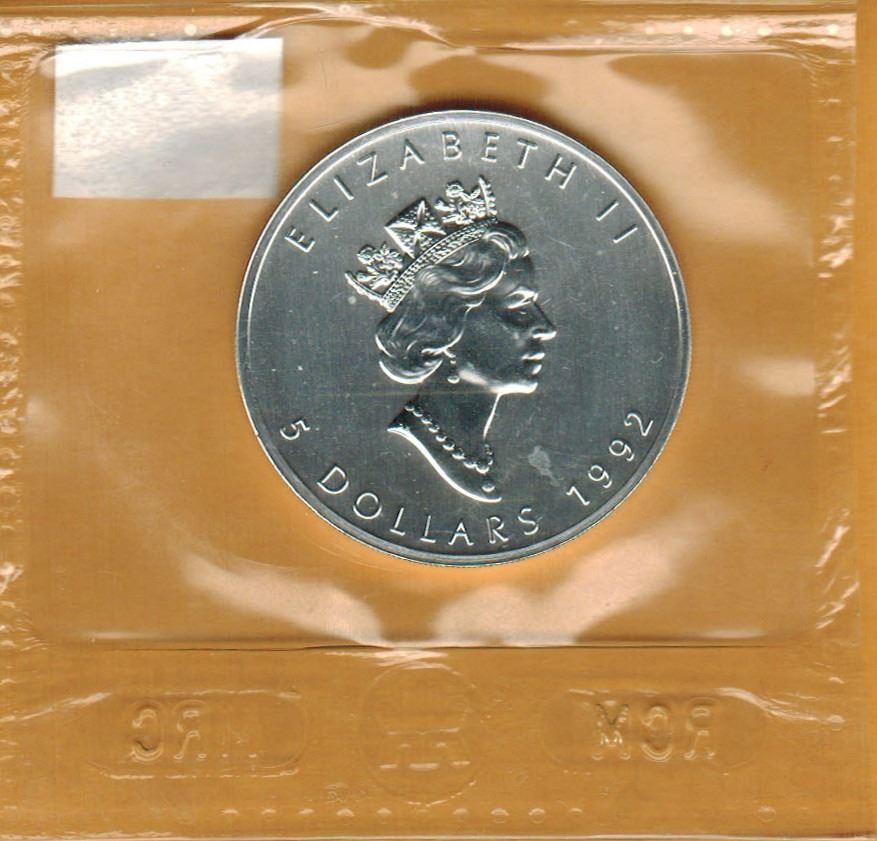 1992 ROYAL CANADIAN MINT - 1 OUNCE SILVER MAPLE LEAF - .9999 FINE