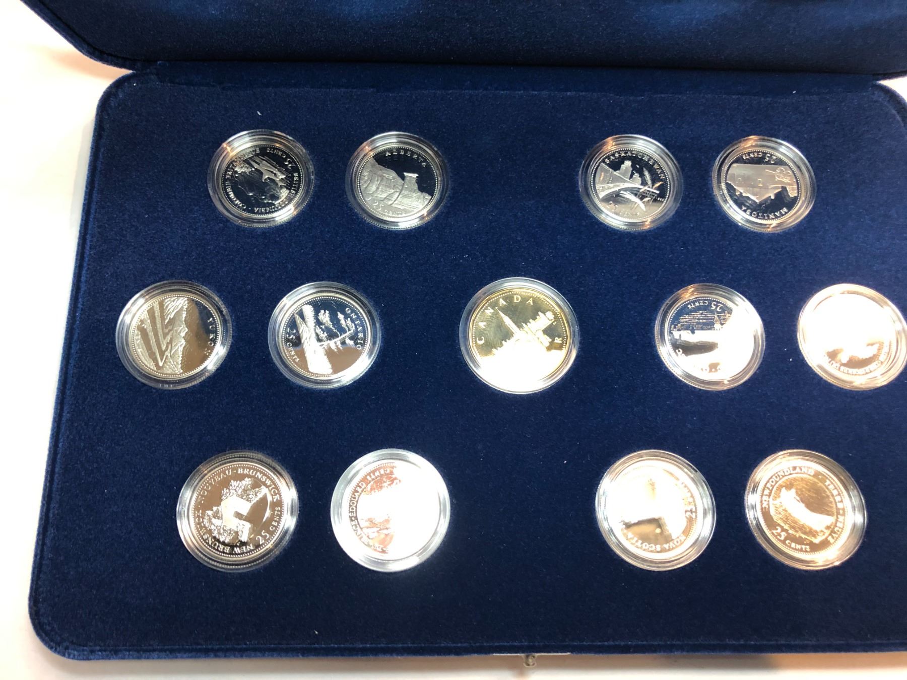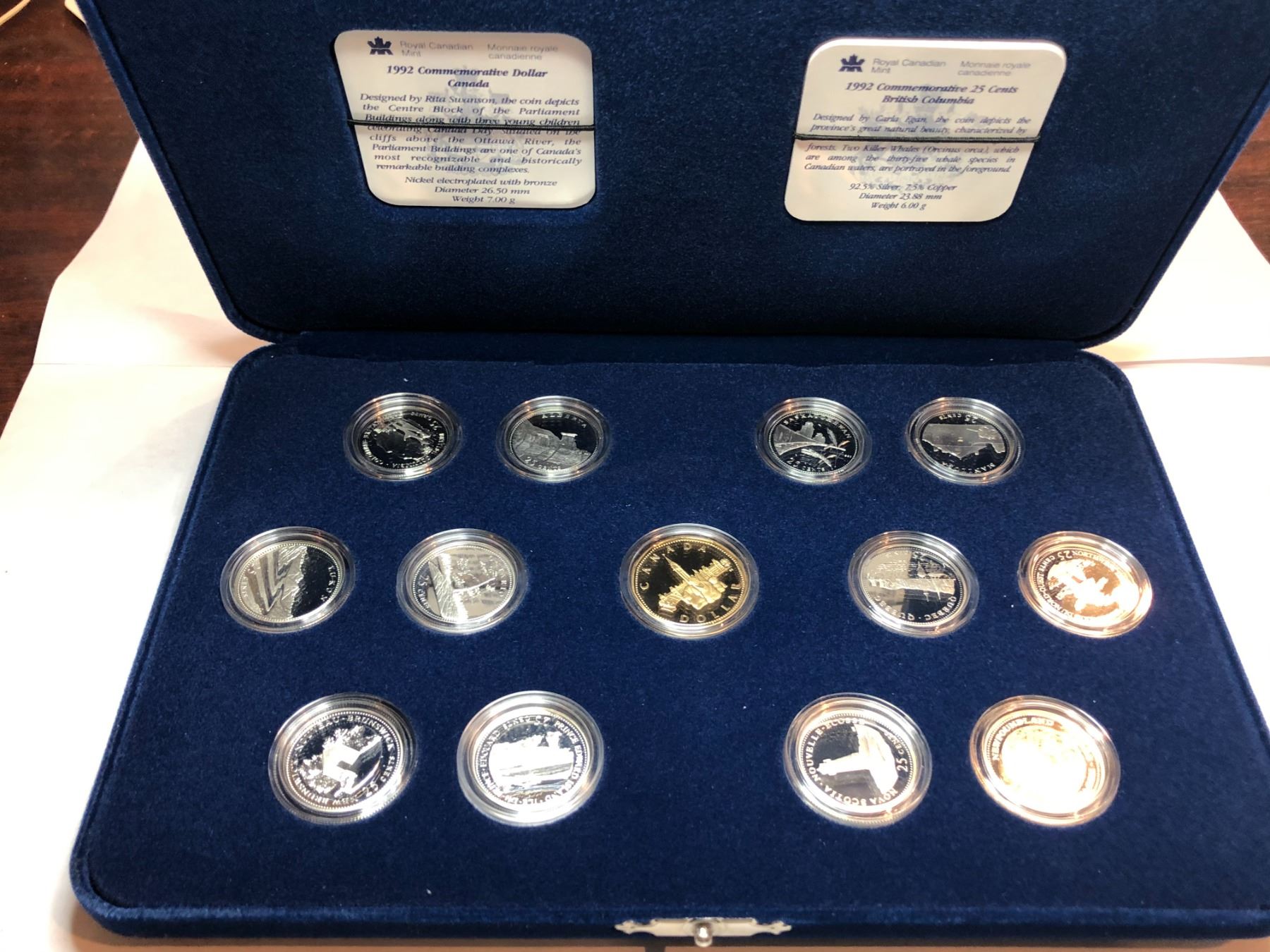 1992 Royal Canadian Mint Commemorative Coin Set Commemorative Dollar - Nickel Electroplated with bronze Commemorative 25 cent coins - 92.5% sterling silver, weigh 6 grams each