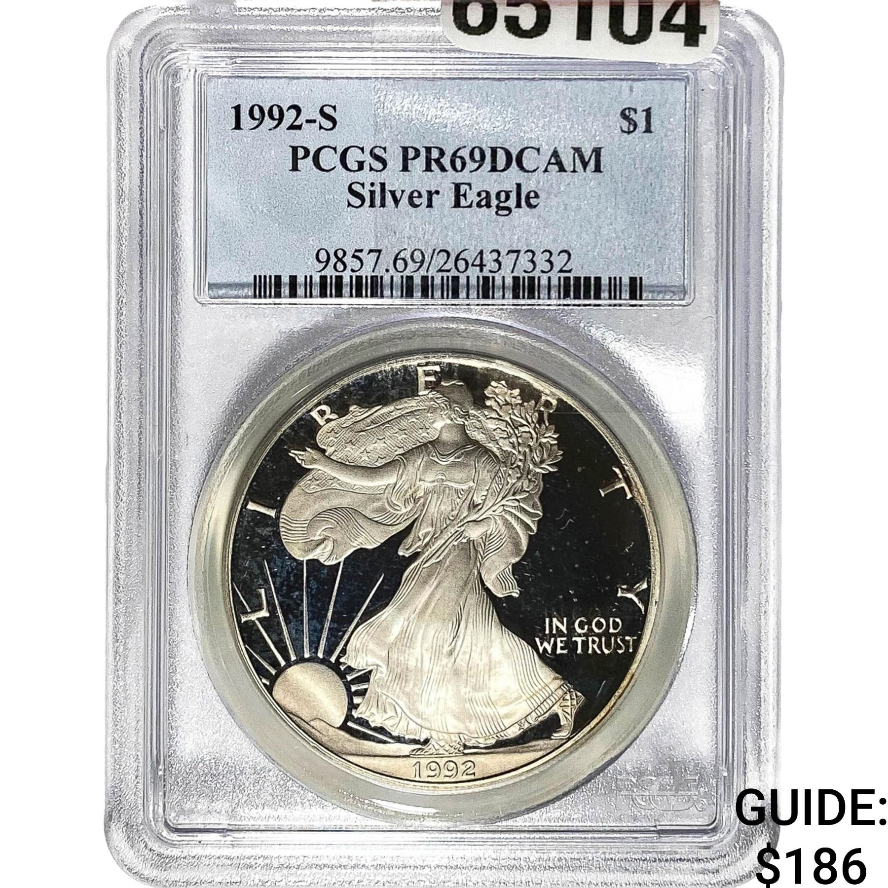 1992-S $1 Silver Eagle PCGS PR69 DCAM