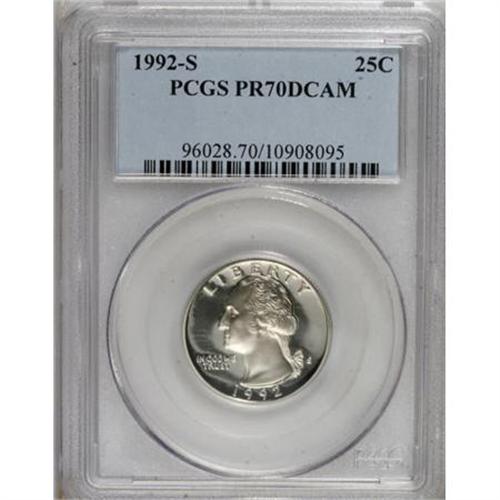 <B>1992-S 25C Clad PR70 Deep Cameo PCGS.</B></I> PCGS Population (119/0). NGC Census: (117/0). Numismedia Wsl. Price for NGC/PCGS coin in PR70: $90. (#96028)<BR><BR><b>Shipping:</b> Coins & Currency (<a target="_blank" href="http://www.heritageauctions.com/common/shipping.php">view shipping information</a>)