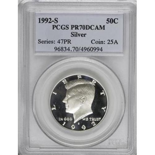 <B>1992-S 50C Silver PR70 Deep Cameo PCGS.</B></I> PCGS Population (108/0). NGC Census: (92/0). Numismedia Wsl. Price for NGC/PCGS coin in PR70: $200. (#96834)<BR><BR><b>Shipping:</b> Coins & Currency (<a target="_blank" href="http://www.heritageauctions.com/common/shipping.php">view shipping information</a>)