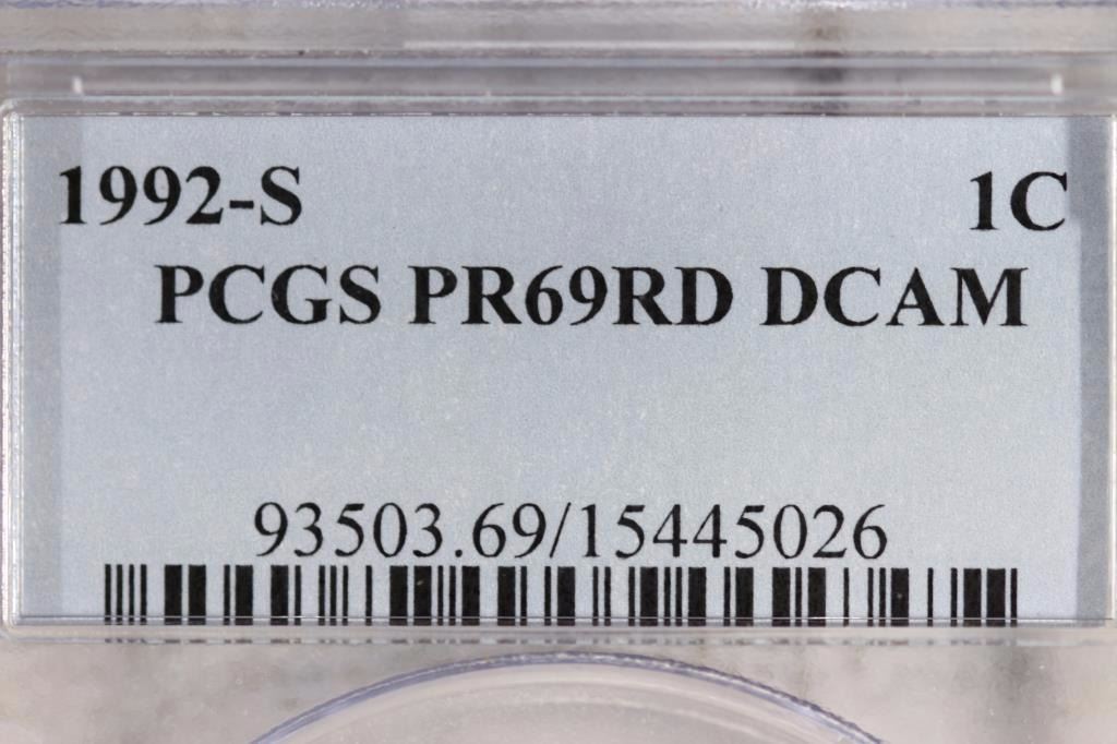 1992-S LINCOLN CENT PCGS PR69RD DCAM