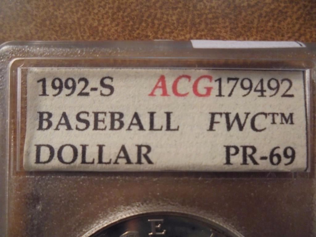 1992-S OLYMPIC BASEBALL SILVER DOLLAR ACG SLAB