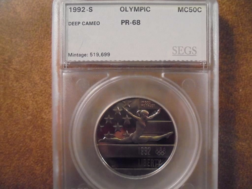 1992-S OLYMPIC HALF DOLLAR SEGS SLAB