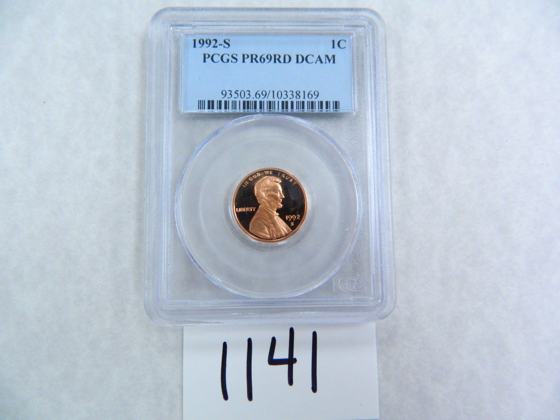 1992-S One Cent PCGS graded PR69 RD DC