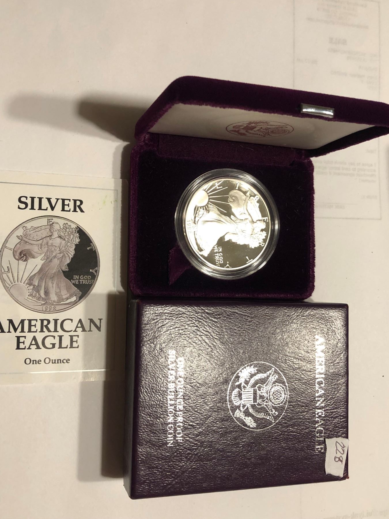 1992 S Proof Silver Eagle in Original Box with Paperwork
