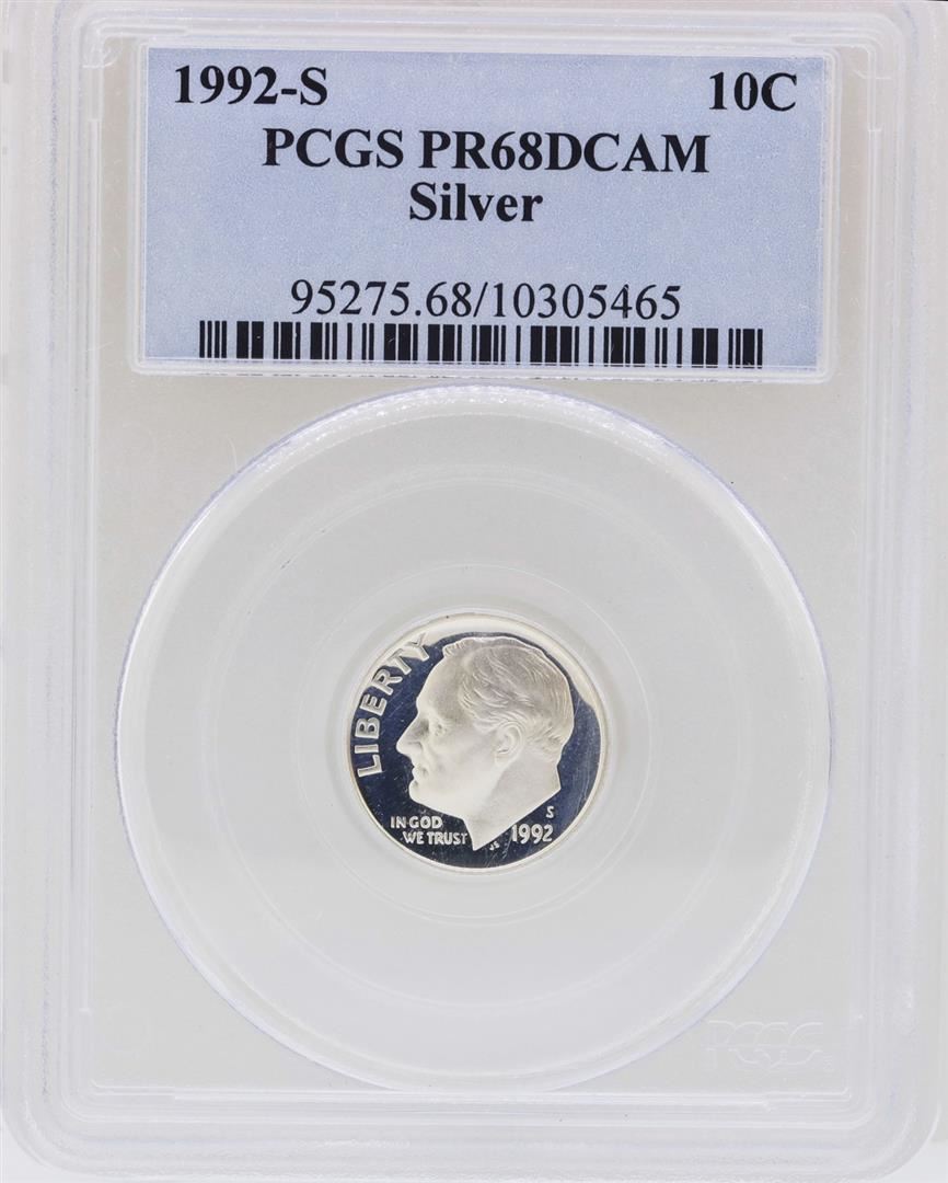One 1992-S Roosevelt Silver Dime Coin PCGS PR68DCAM. PCGS Certified.