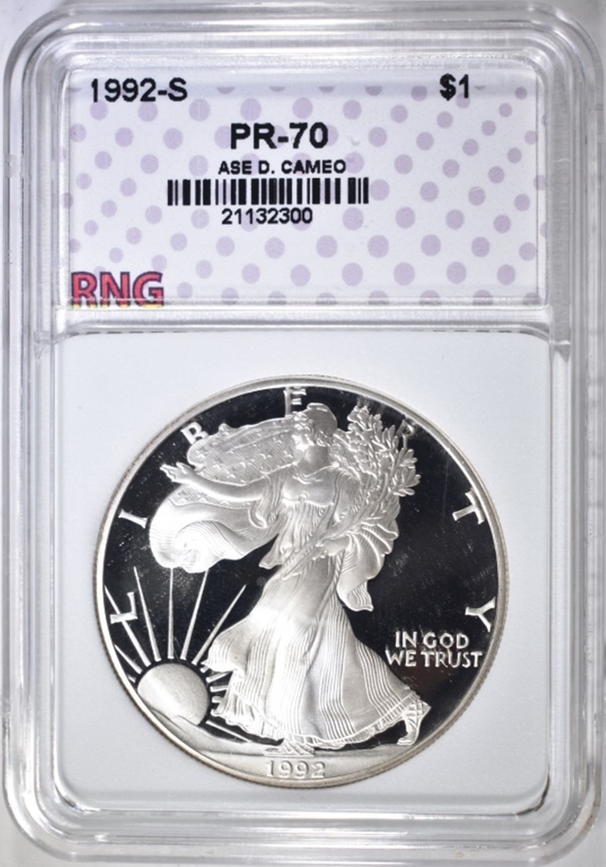 1992-S SILVER EAGLE, RNG PERFECT GEM PR DCAM