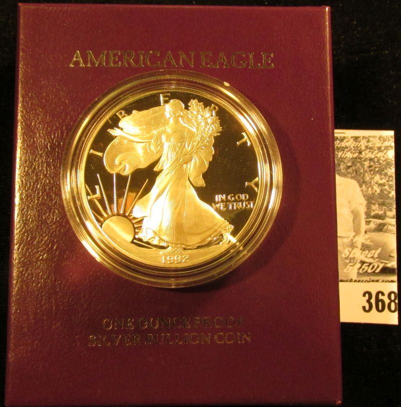 1992 S U.S. Proof Silver American Eagle One Ounce .999 fine Silver Dollar in original box of issue with COA.