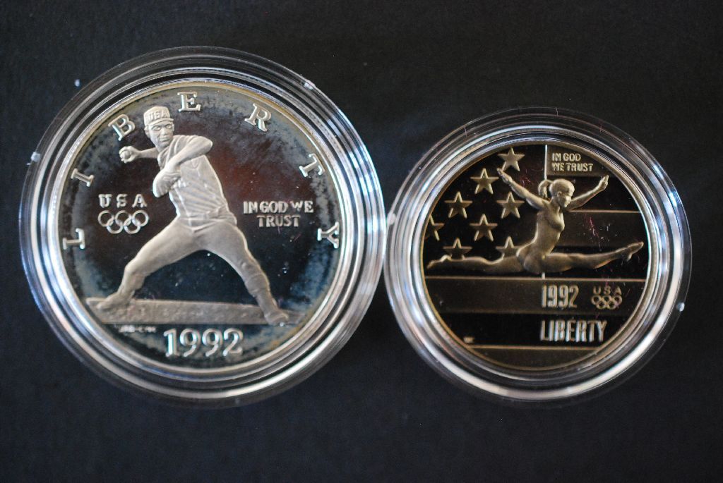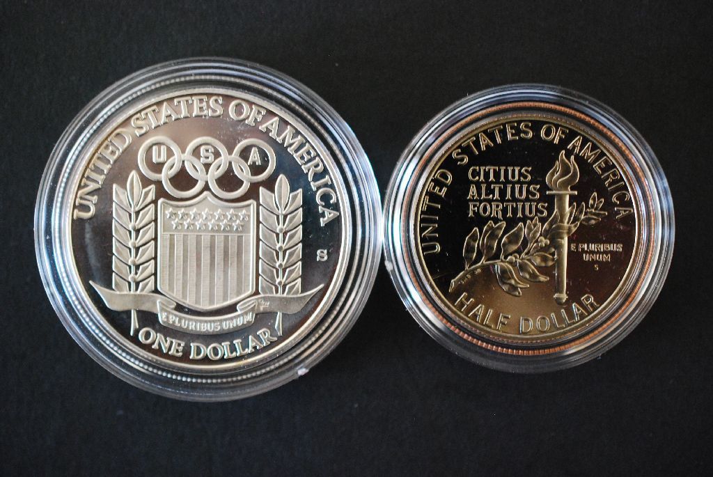 1992-S US Olympic Commerative $1 Proof & 1992-S US Olympic Commerative Half Proof; CLAD; EST. $30-45