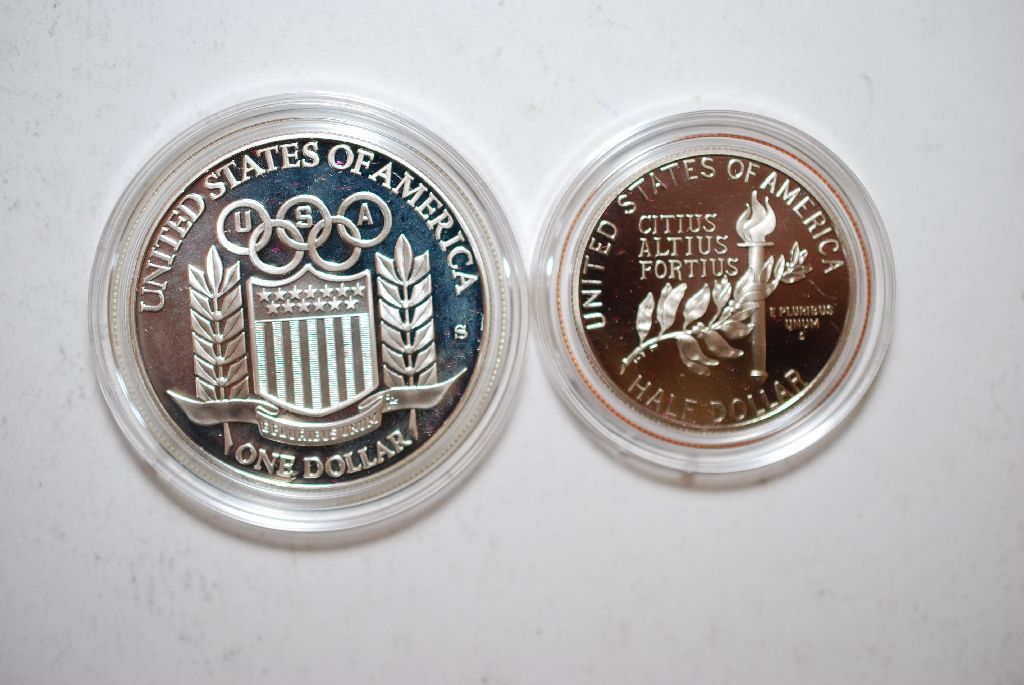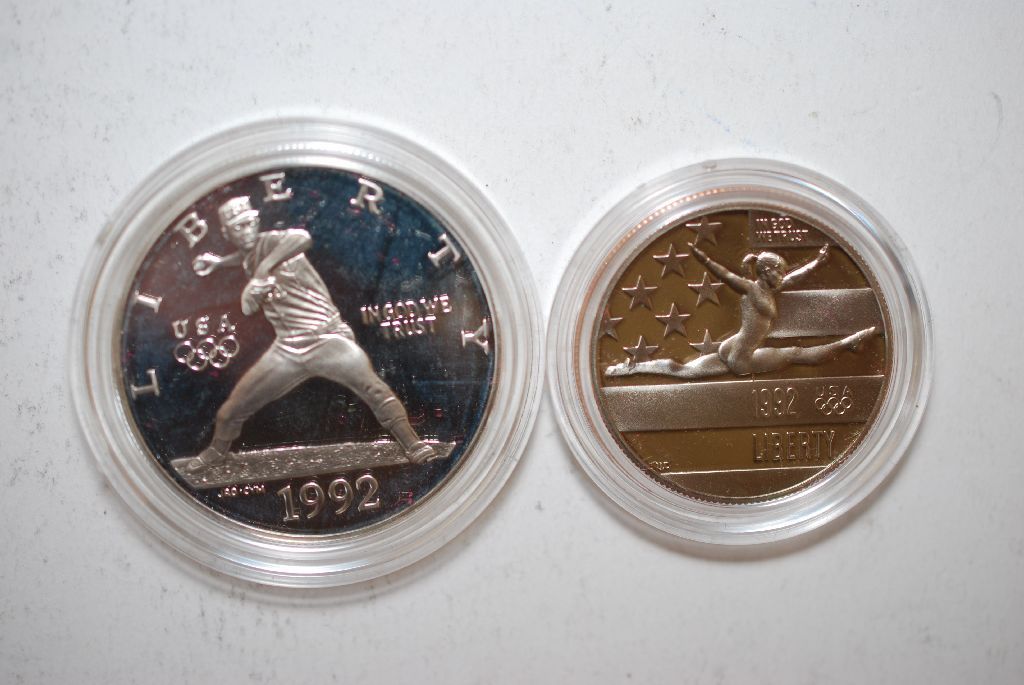 1992-S US Olympic Two-Coin Proof Set In Velvet Box With COA Included; Baseball Player Commemorative $1 & Gymnst Commemorative Half Dollar; EST. $35-45