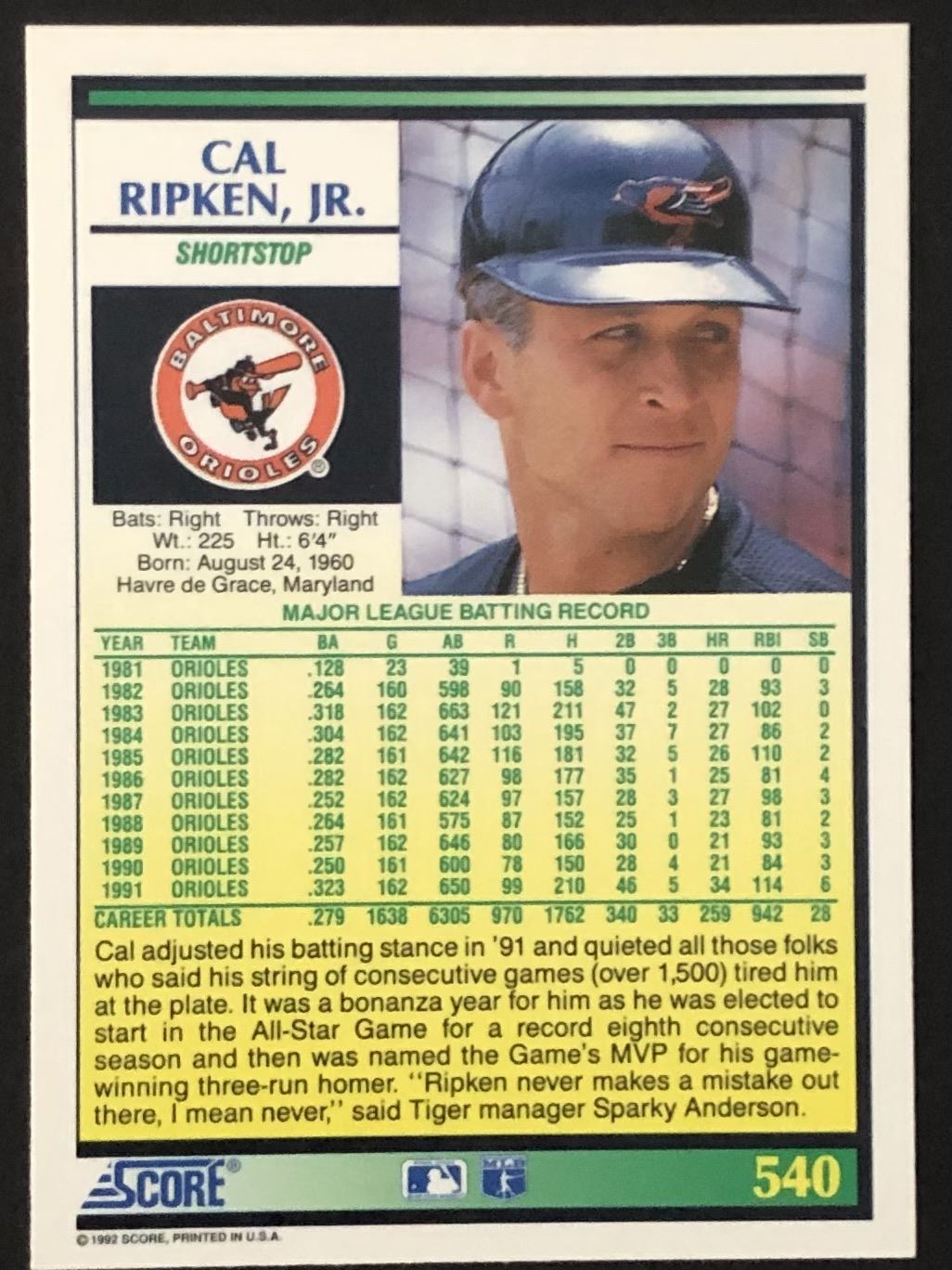Card #540 baseball, MLB, hall of fame