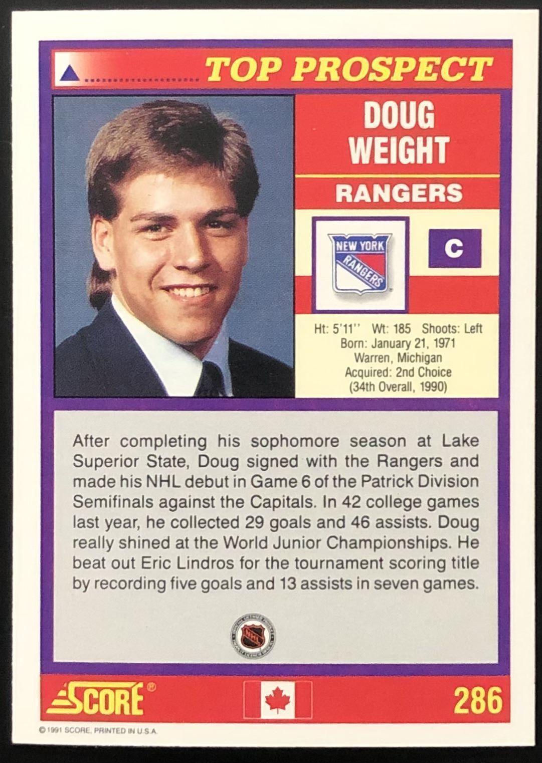 Card #286 NHL, hockey, rookie