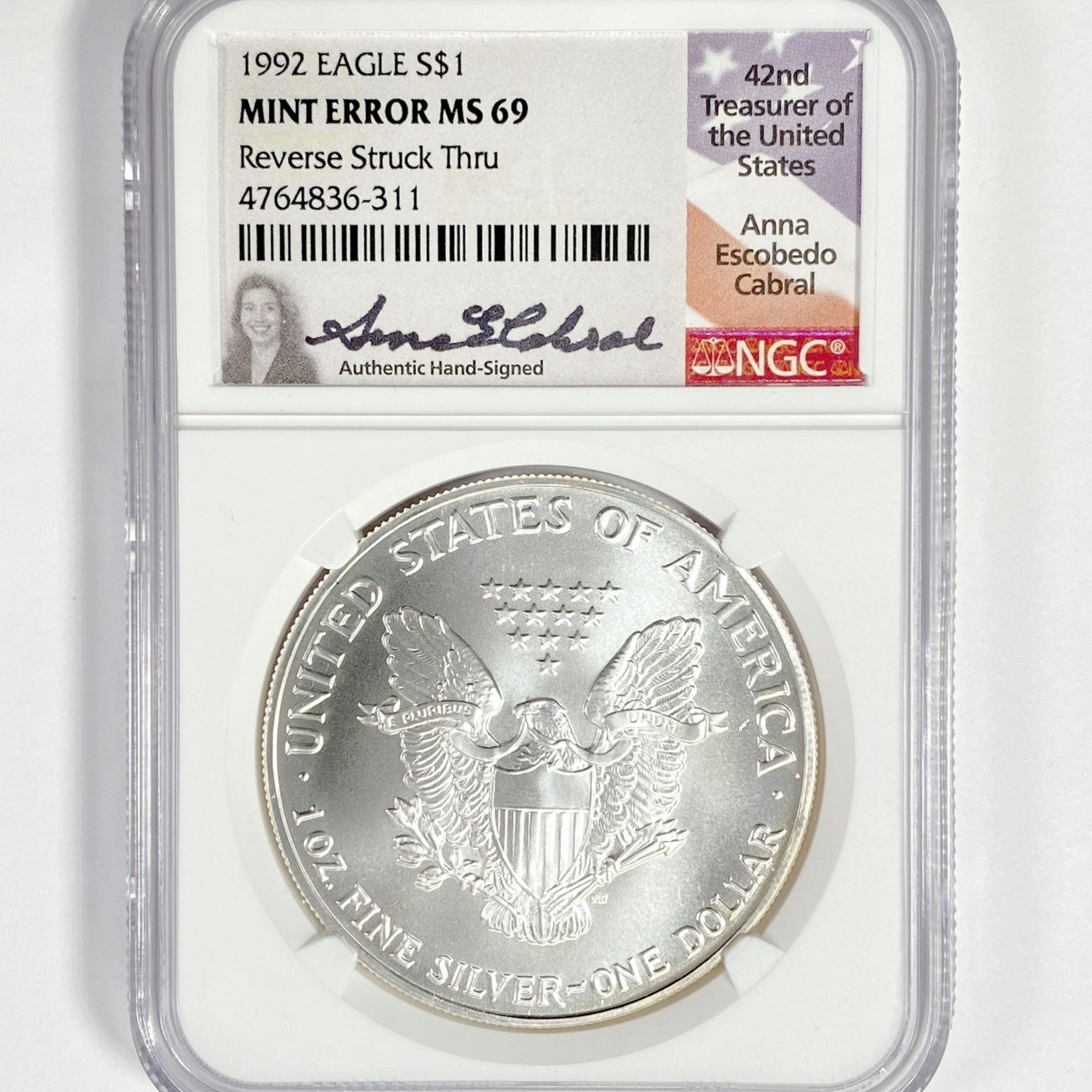1992 Silver Eagle NGC-MS69 M.E. Rev Struck Thru