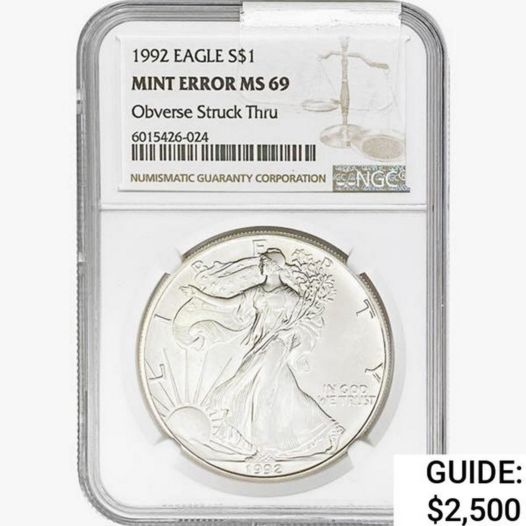 1992 Silver Eagle NGC MS69 Mint Error