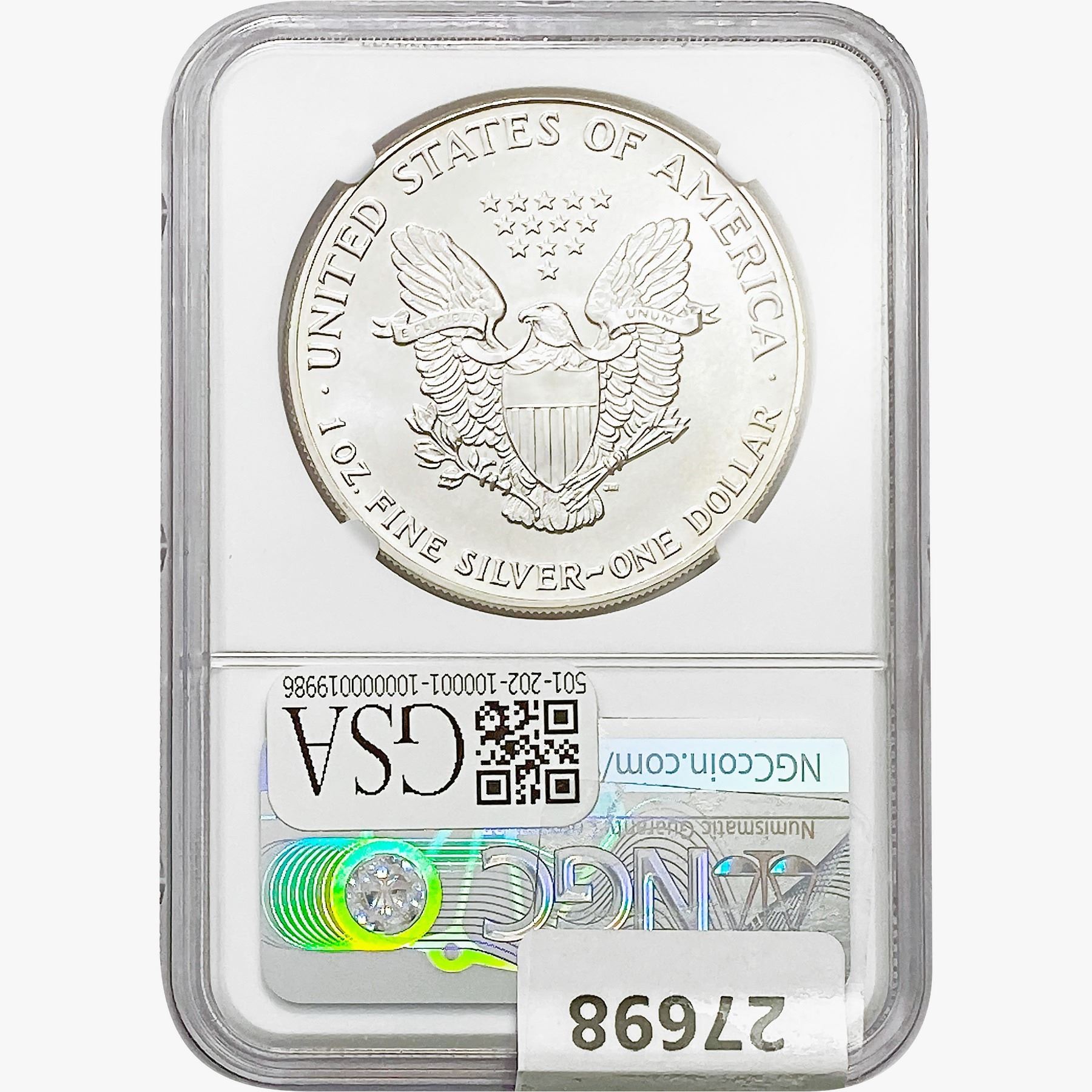 e. Coins sold referencing a third-party grading service are sold “AS IS” without any express or implied warranty, except for a guarantee by GSA that they are genuine. Removal or alteration of the holder, voids all of Bidder’s claims concerning that Product. Certain warranties may be available from the grading services and Bidders are referred to them for further details: Numismatic Guaranty Corporation (NGC), PO Box 4776, Sarasota, FL 34230, www.ngccoin.com/services/writtenguarantee.asp; Professional Coin Grading Services (PCGS), PO Box 9458, Newport Beach, CA 92658, www.pcgs.com/guarantee.html; ANACS, 6555 S. Kenton St., Ste. 303, Englewood, CO 80111; and Independent Coin Grading Co. (ICG), 7901 East Bellview, Ave., Suite 50, Englewood, CO 80111.