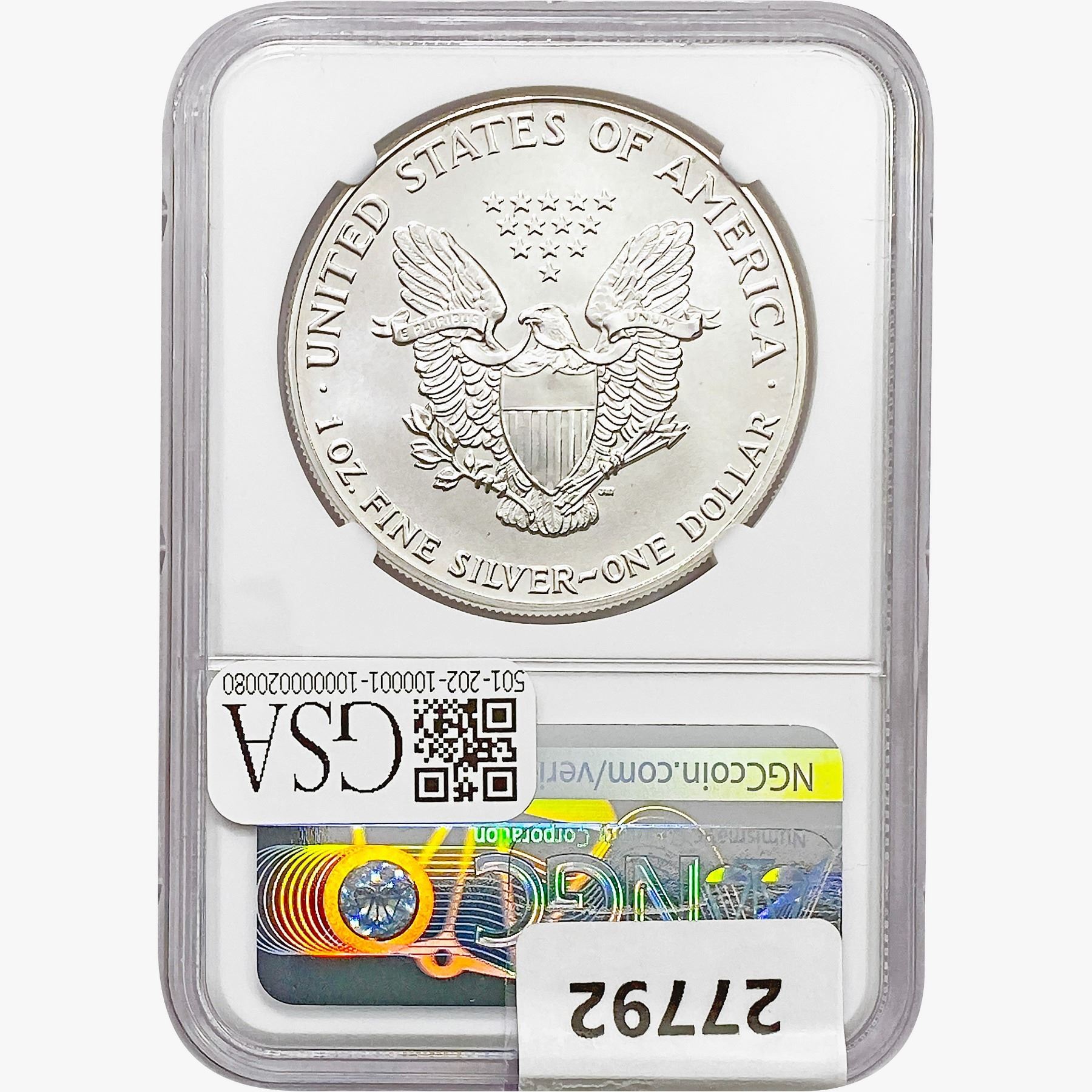 1992 Silver Eagle NGC MS69 OBV Struck Thru Mint Er