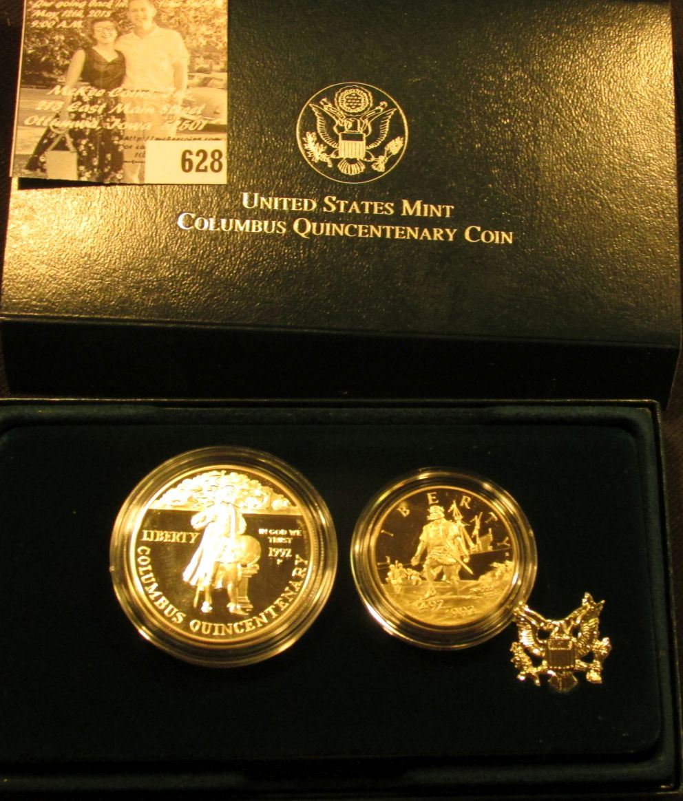 1992 Two-Coin Proof Set "The Columbus Quincentenary Coins" in orginal box with COA.