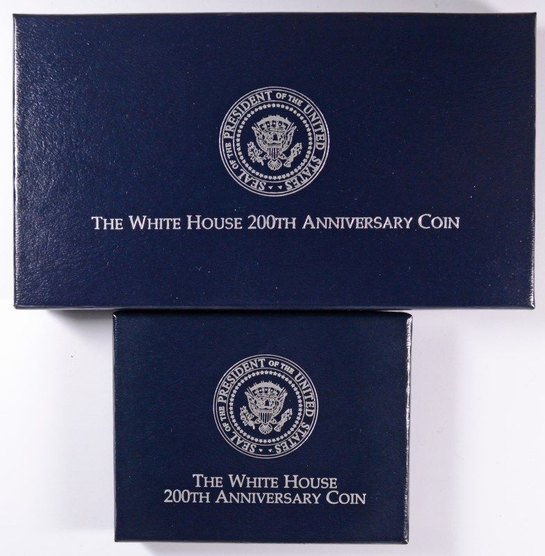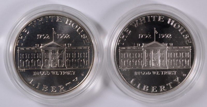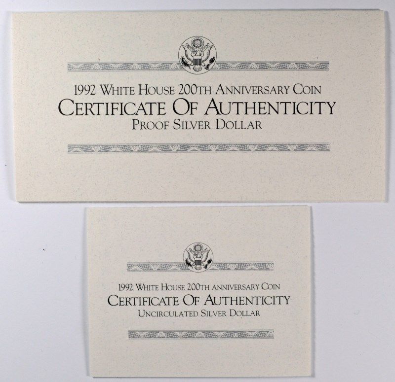 1992 U.S. WHITE HOUSE ANNIV. Pf & UNC. COMMEM, SILVER DOLLARS/NICE PACKAGING