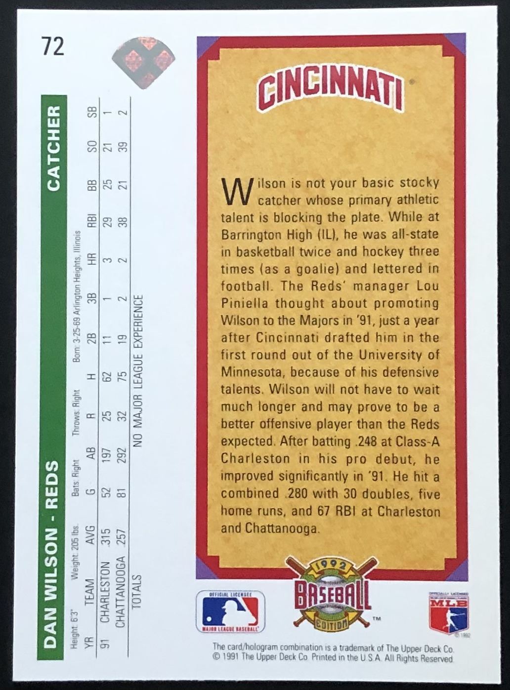 Card #72 MLB, UD, baseball, rookie