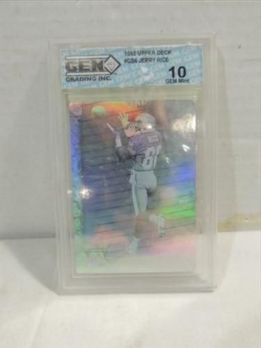 1992 UPPER DECK #GB6 GRADED FOOTBALL CARD JERRY RICE. GRADED GEM GRADING MINT 10. AS SHOWN. VIEW PICTURE FOR DETAIL.