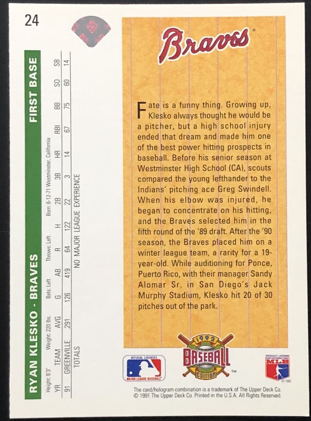 Card #24 MLB, UD, baseball, rookie