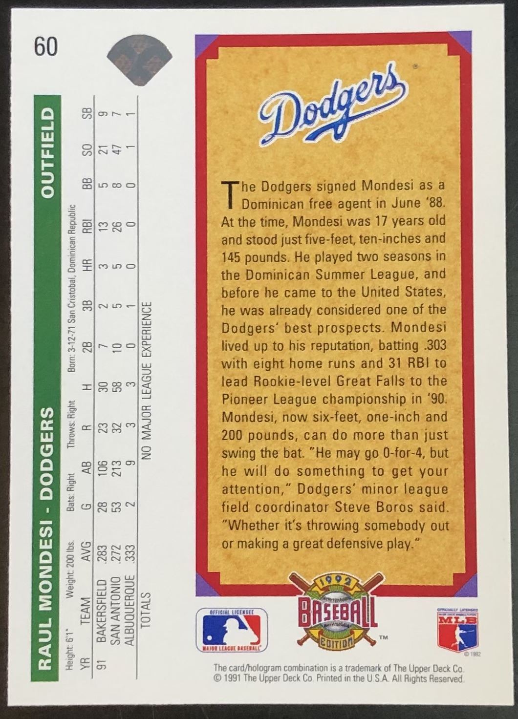 Card #60 UD, MLB, baseball, rookie