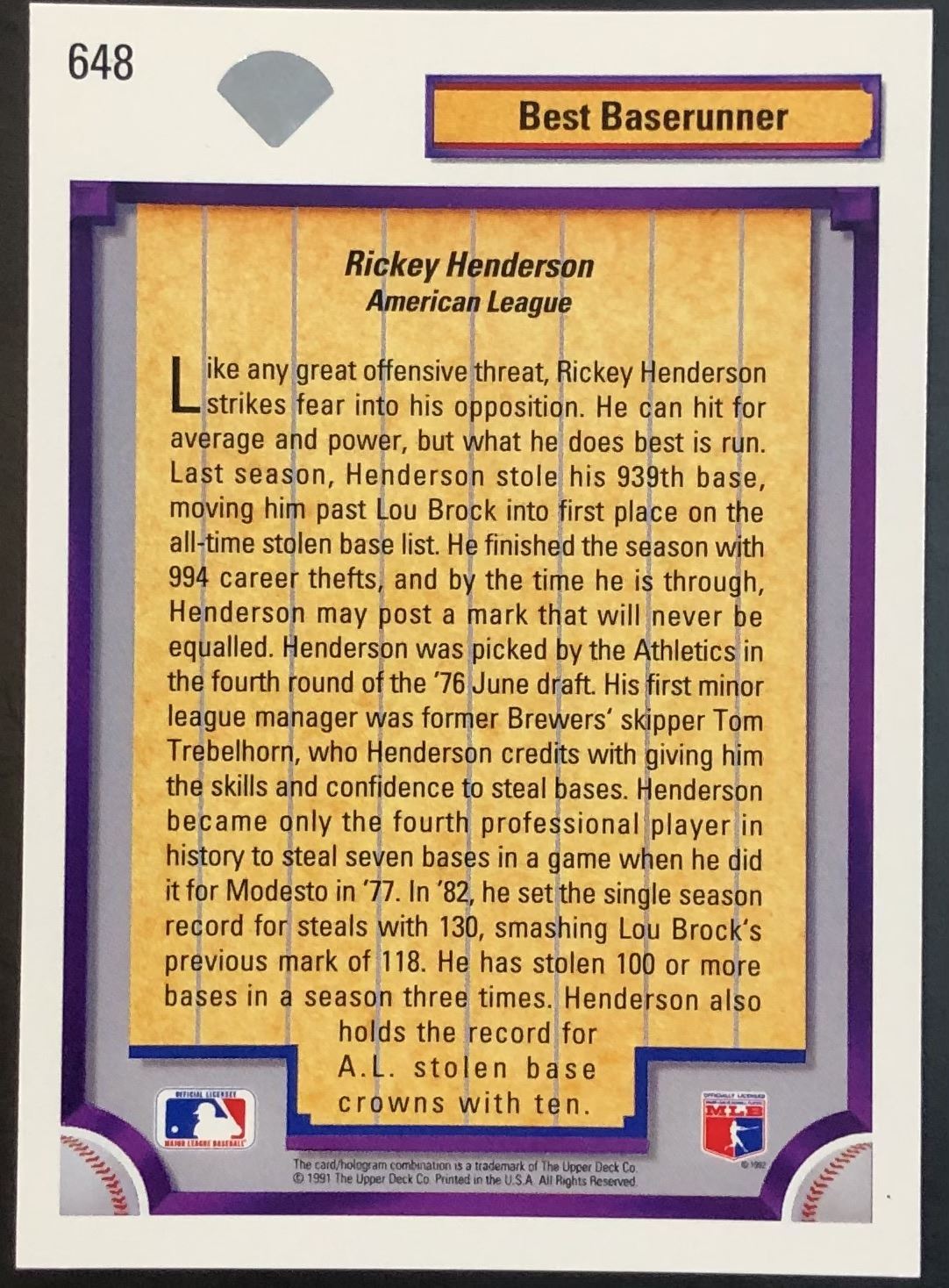 Card #648 UD, MLB, baseball, hall of fame