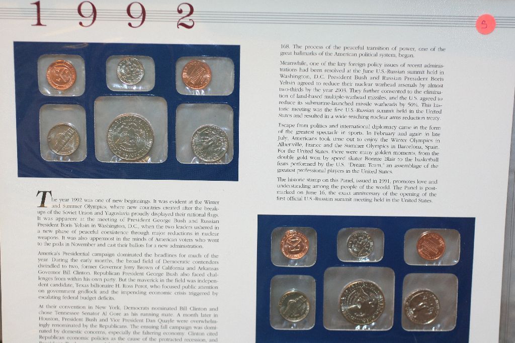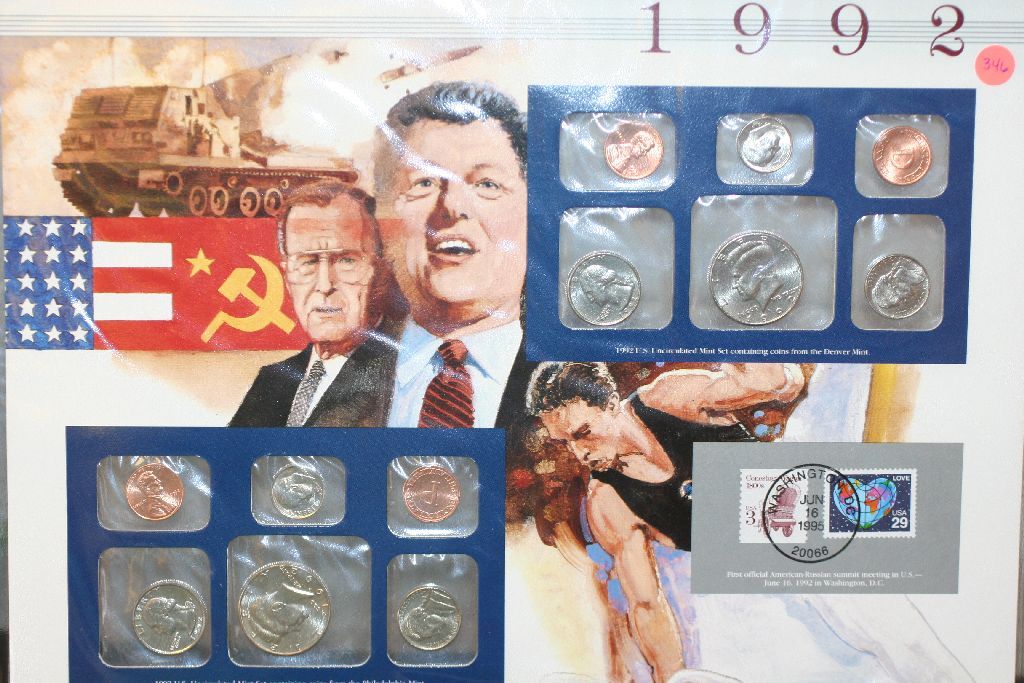 1992 US Mint Coin Set Commerating First Official American-Russian Summit in US W/Postal Stamps; P&D Mints, UNC Dated 1995