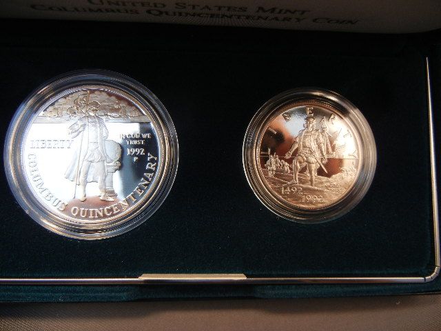 1992 US Mint Columbus Quincentenary Proof, 90% Silver Dollar and Clad Half Dollar