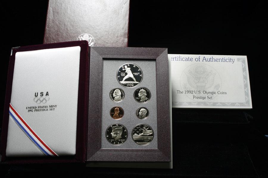 Contains the 1992 Olympic 90% silver US Silver Dollar and the 1992 Olympic Half Dollar plus the Traditional 5 pieces 1992 Proof Set. Note at current Silver prices the Bonus Silver Dollar alone in this Set would Melt at over $15.00!