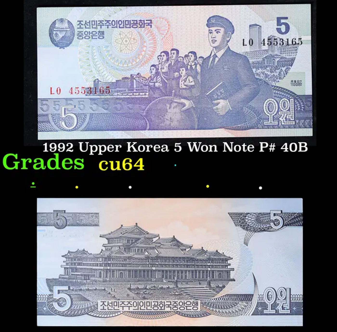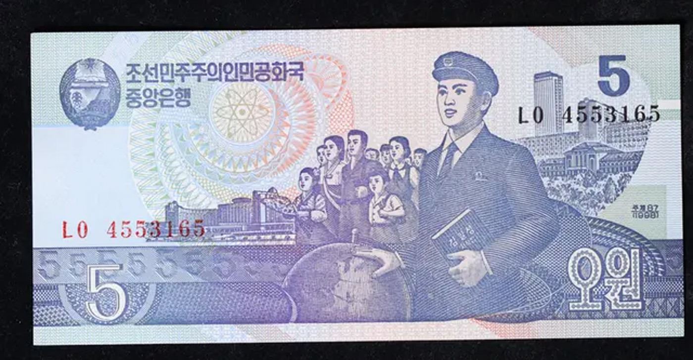 1992 Upper Korea 5 Won Note P# 40B Grades Choice CU.