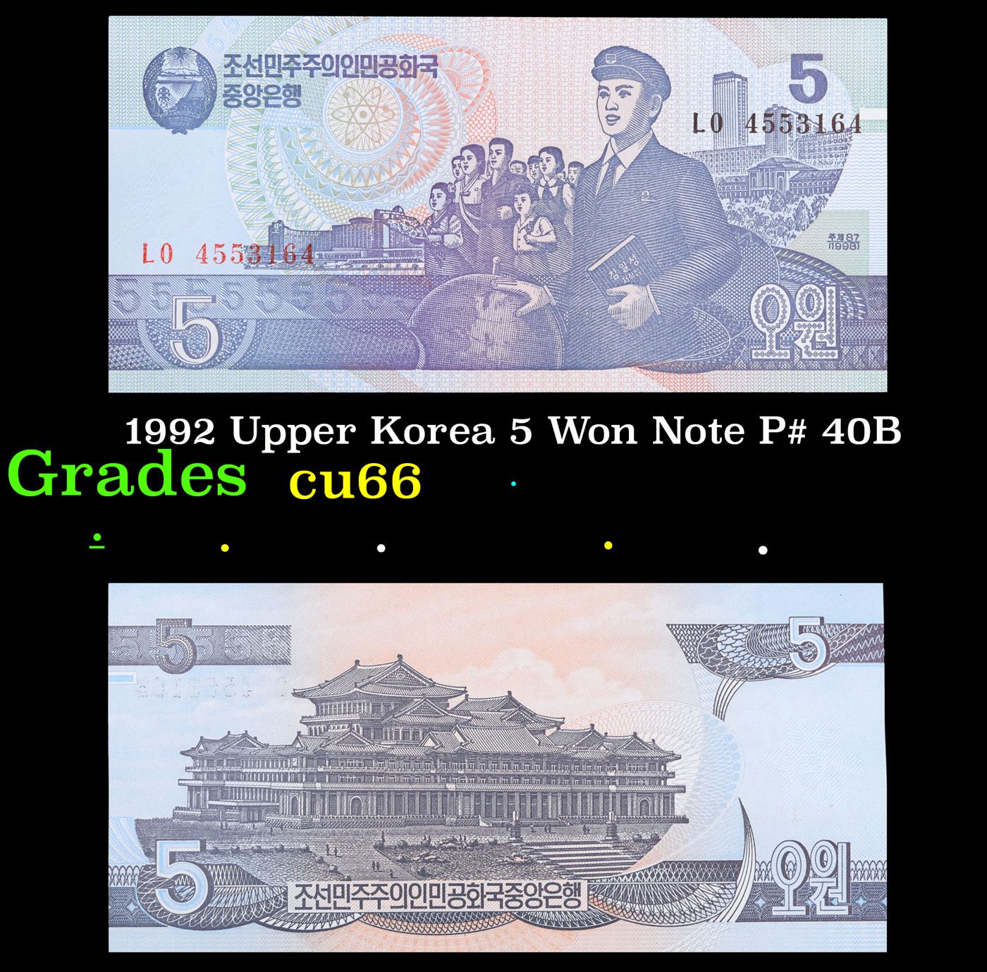 1992 Upper Korea 5 Won Note P# 40B Grades Gem+ CU.