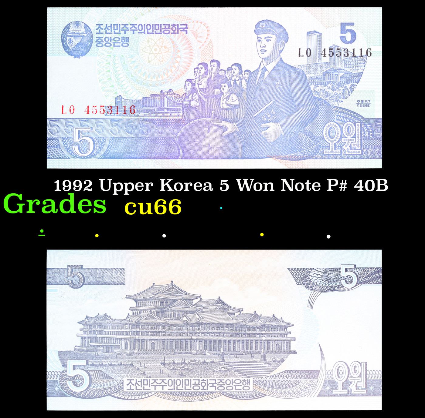 1992 Upper Korea 5 Won Note P# 40B Grades Gem+ CU.