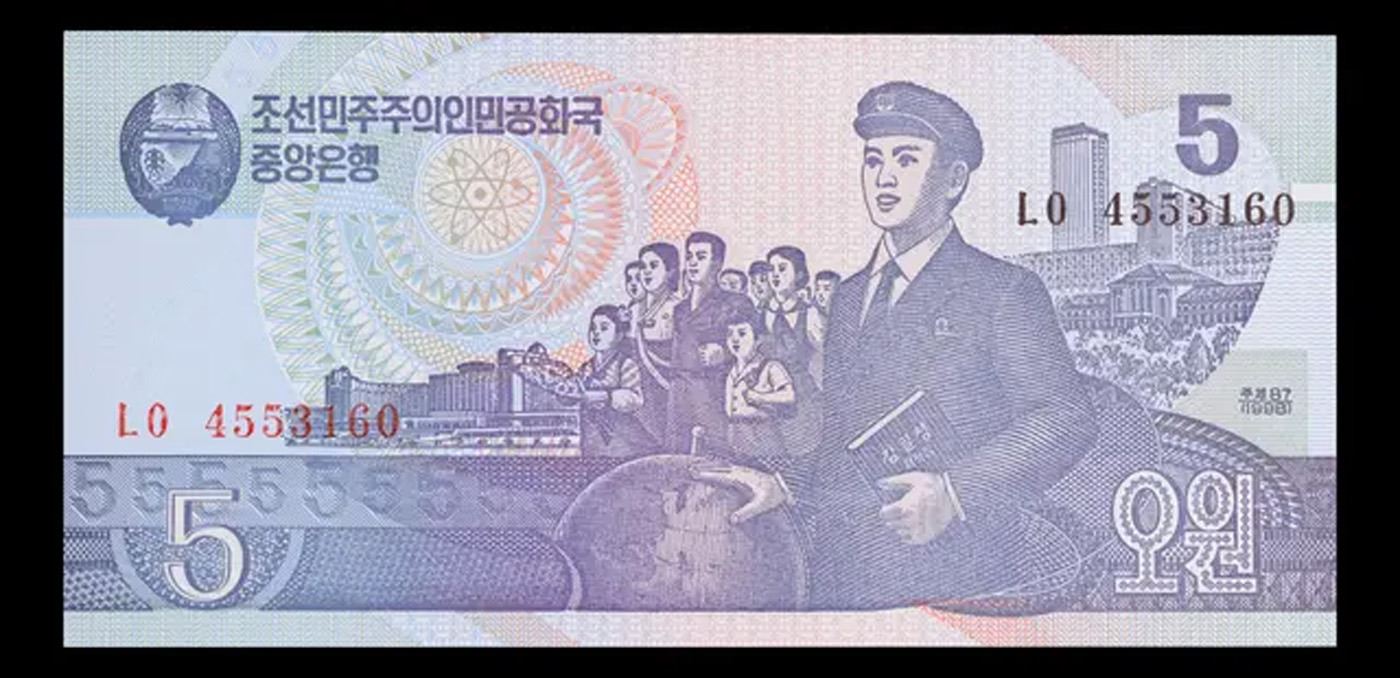 1992 Upper Korea 5 Won Note P# 40B Grades Gem CU.