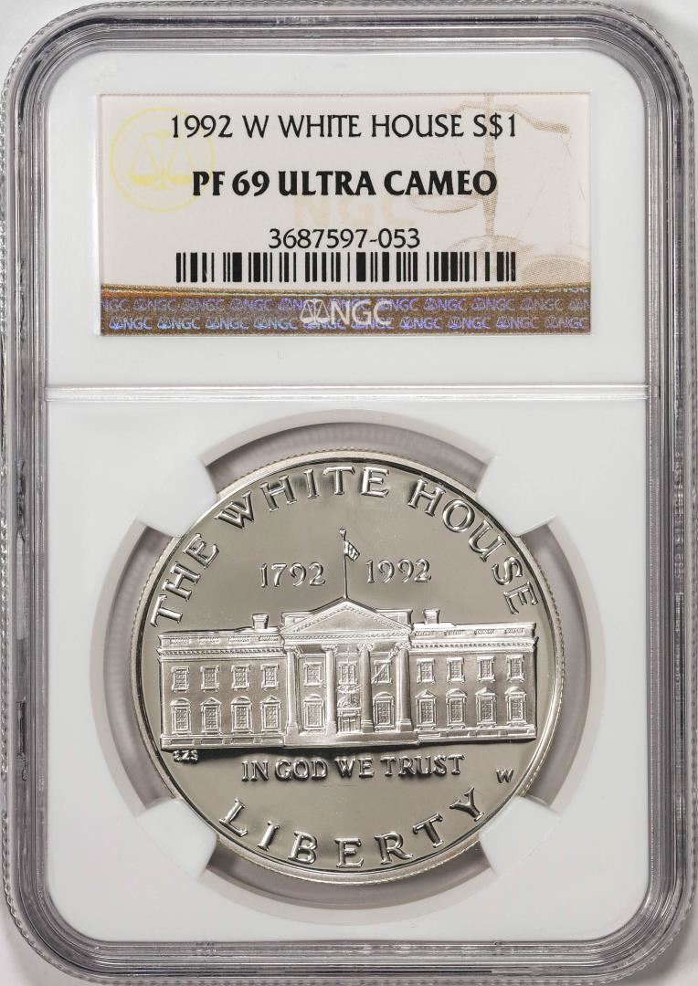 One 1992-W $1 Proof White House Commemorative Silver Dollar Coin NGC PF69 Ultra Cameo. NGC Certified.