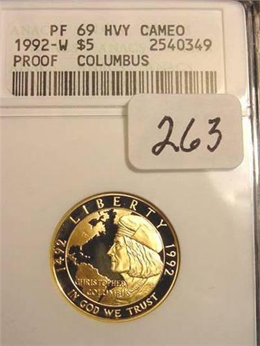 1992-W $5.00 Commemorative Columbus Gold Coin ANACS Proof 69 Hvy Cameo