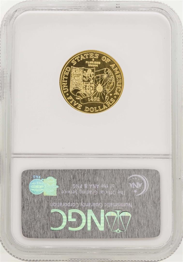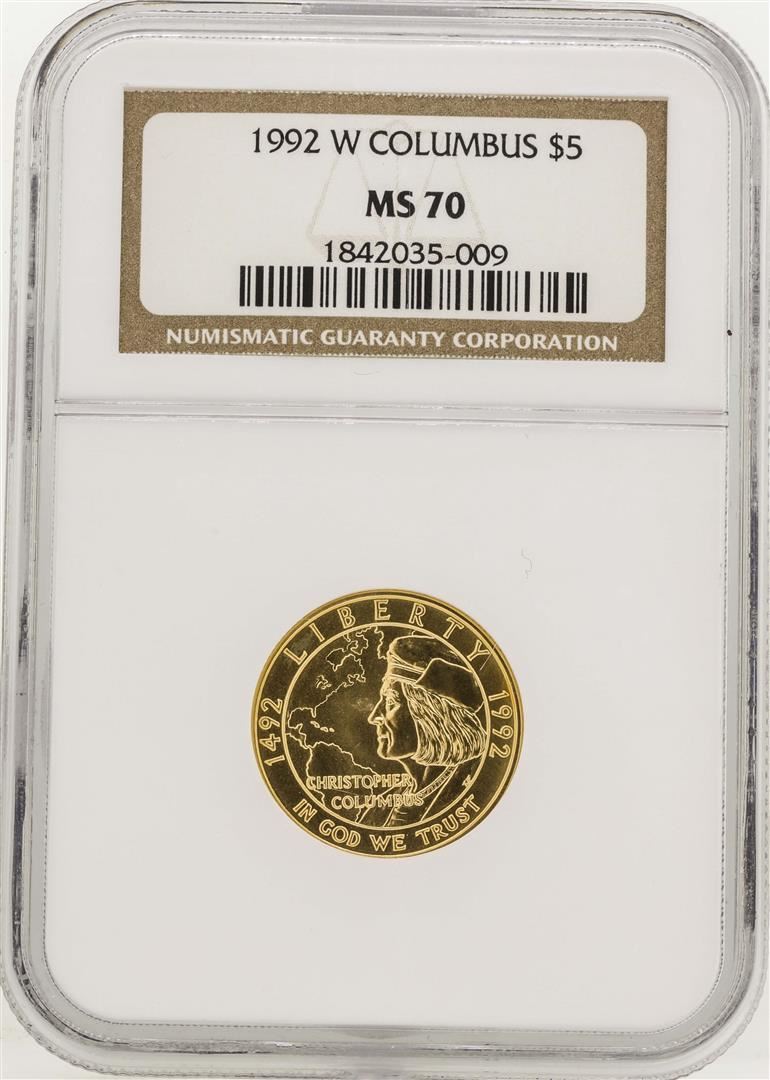 One 1992-W $5 Columbus Commemorative Gold Coin NGC MS70. NGC Certified.
