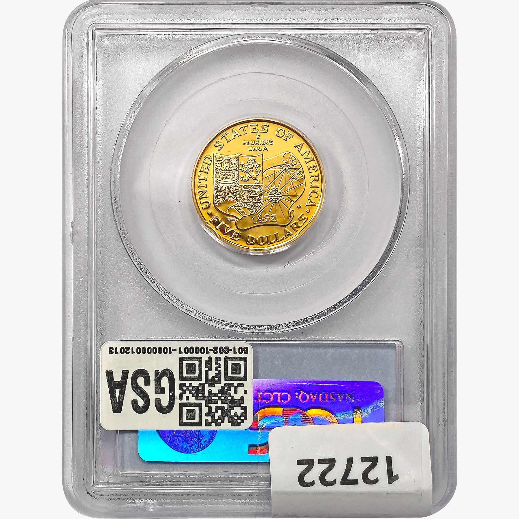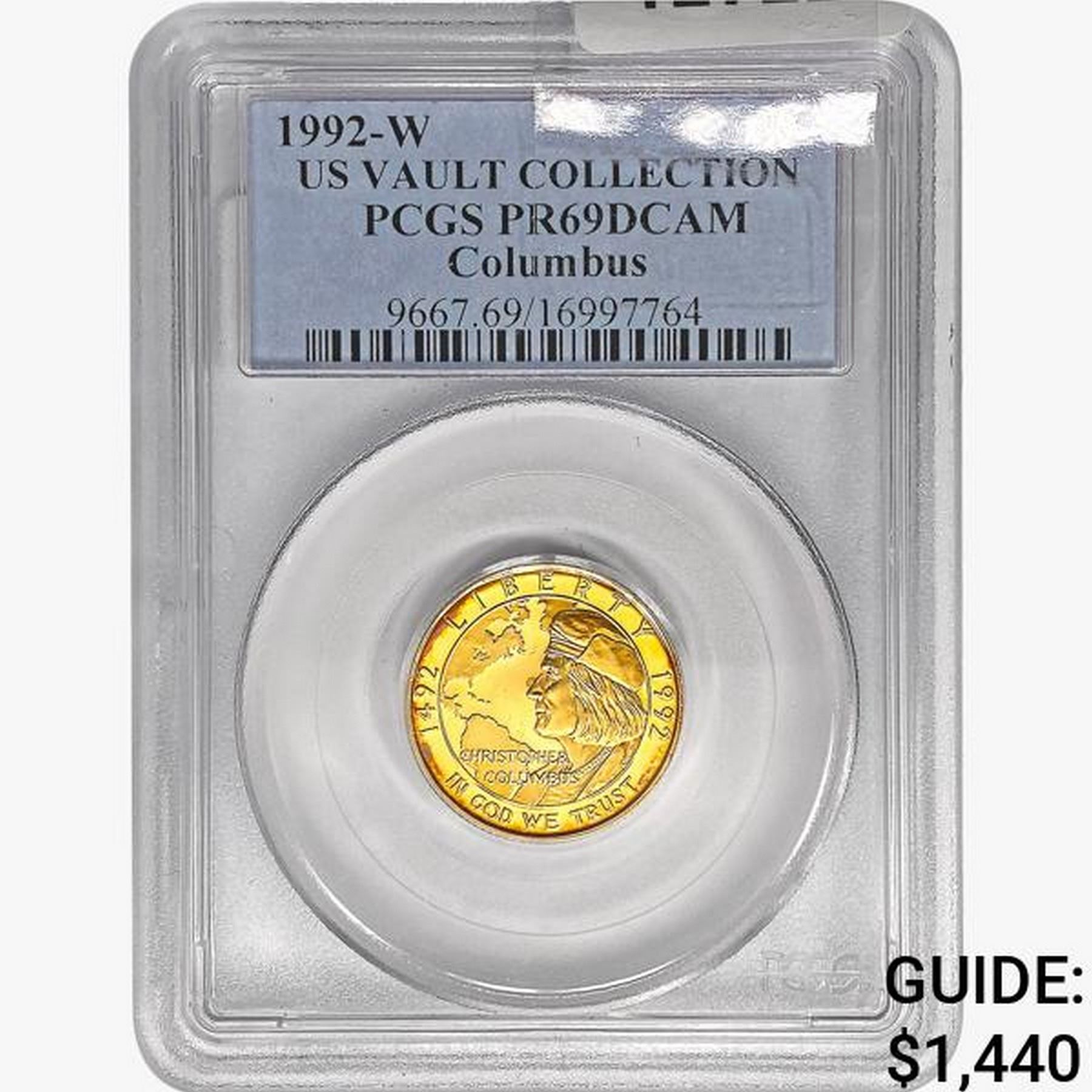 1992-W Columbus $5 .2419oz. Gold PCGS PR69 DCAM