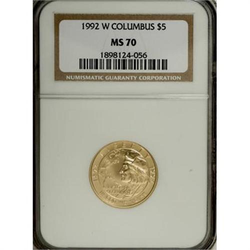 1992-W G$5 Columbus Gold Five Dollar MS70 NGC