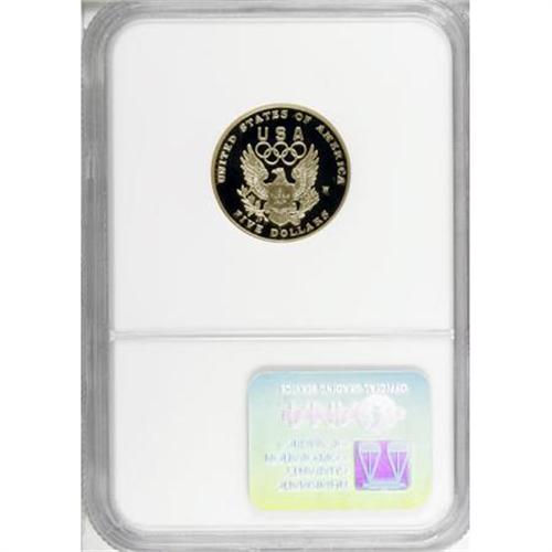 <B>1992-W G$5 Olympic Gold Five Dollar PR70 Deep Cameo NGC.</B></I> NGC Census: (784/0). PCGS Population (63/0). Mintage: 77,313. Numismedia Wsl. Price for NGC/PCGS coin in PR70: $270. (#9926)<BR><BR><b>Shipping:</b> Coins & Currency (<a target="_blank" href="http://www.heritageauctions.com/common/shipping.php">view shipping information</a>)